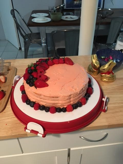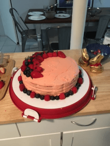 Strawberry Cake with Whipped Cream Frosting & Fresh Fruit Recipe